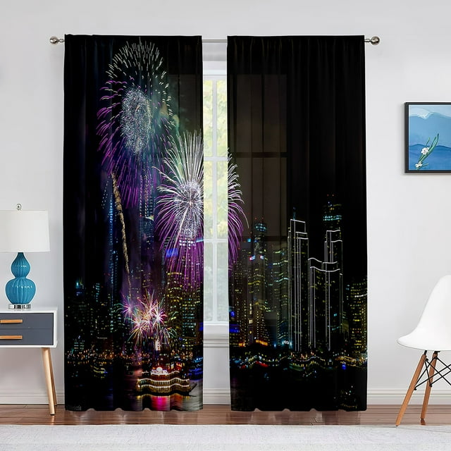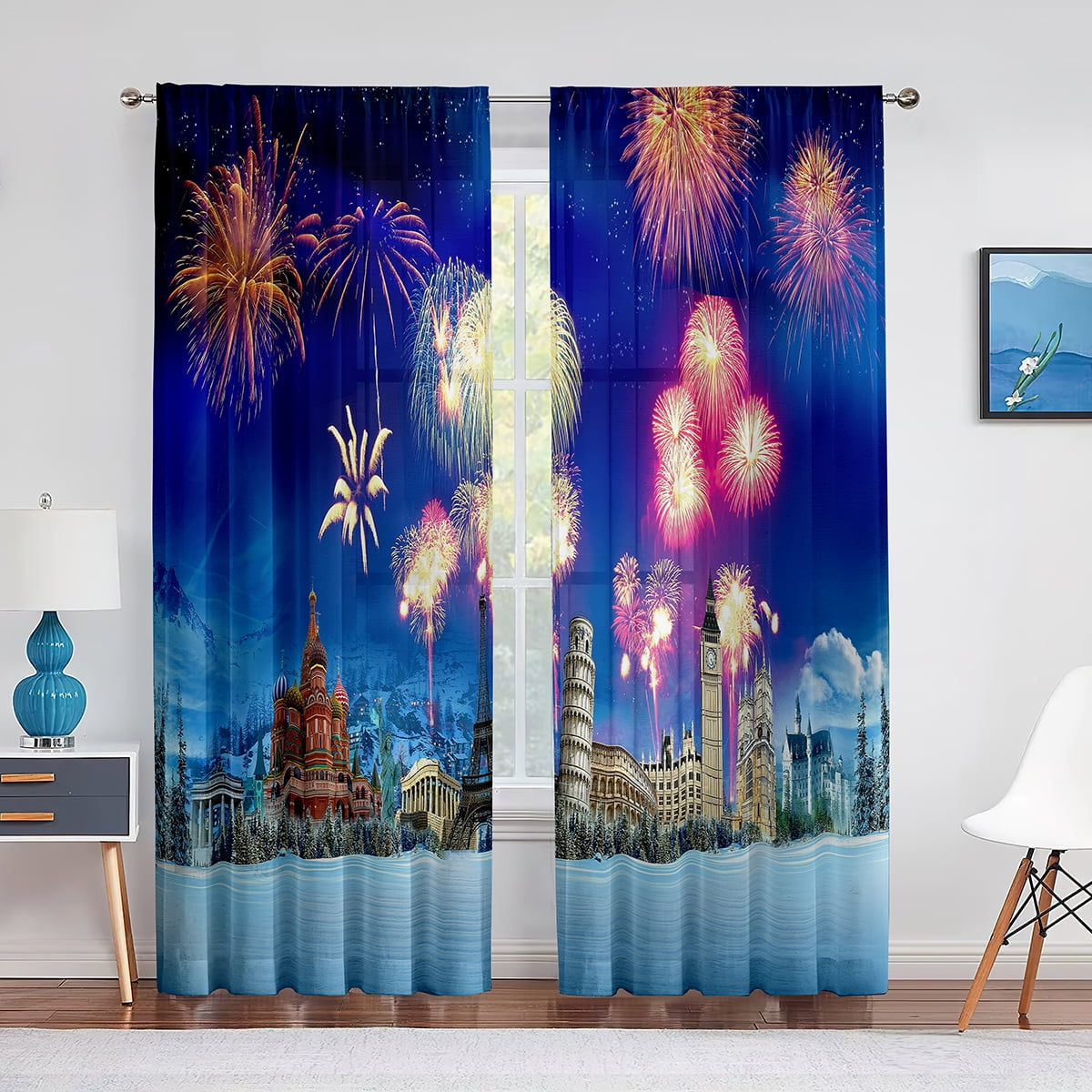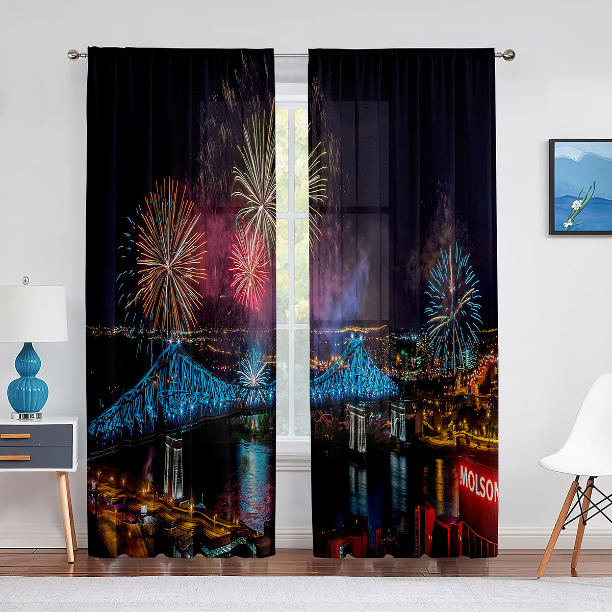 Dreamy Landscape Night View s Starry Sky Tulle Curtains for Living Room