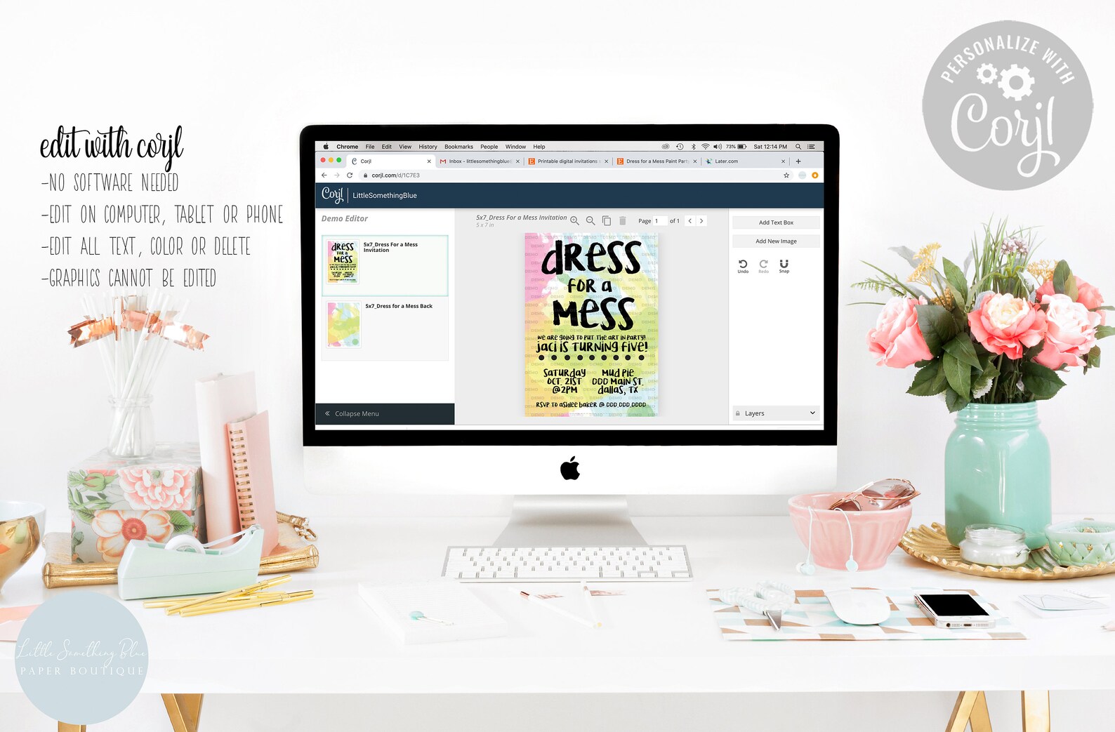 Art Birthday Party Invitation Editable Template Dress for a Mess Pain
