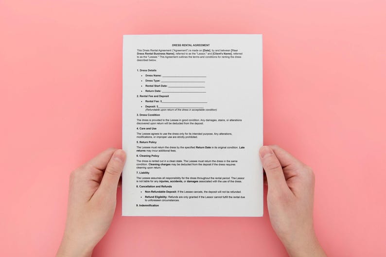 Dress Rental Agreement Template: Digital Download PDF Etsy