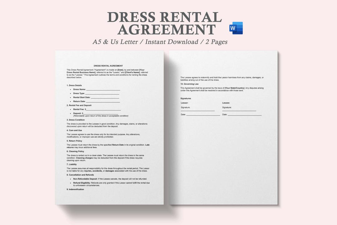 Dress Rental Agreement Template: Digital Download Etsy