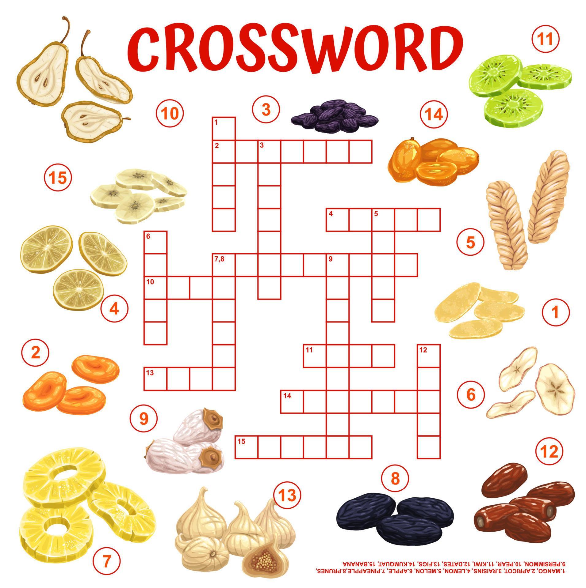 Crossword grid find word game with dried fruits 11353519 Vector Art at