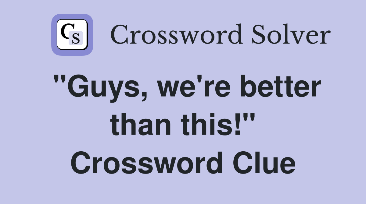 quot Guys we #39 re better than this quot Crossword Clue Answers Crossword Solver