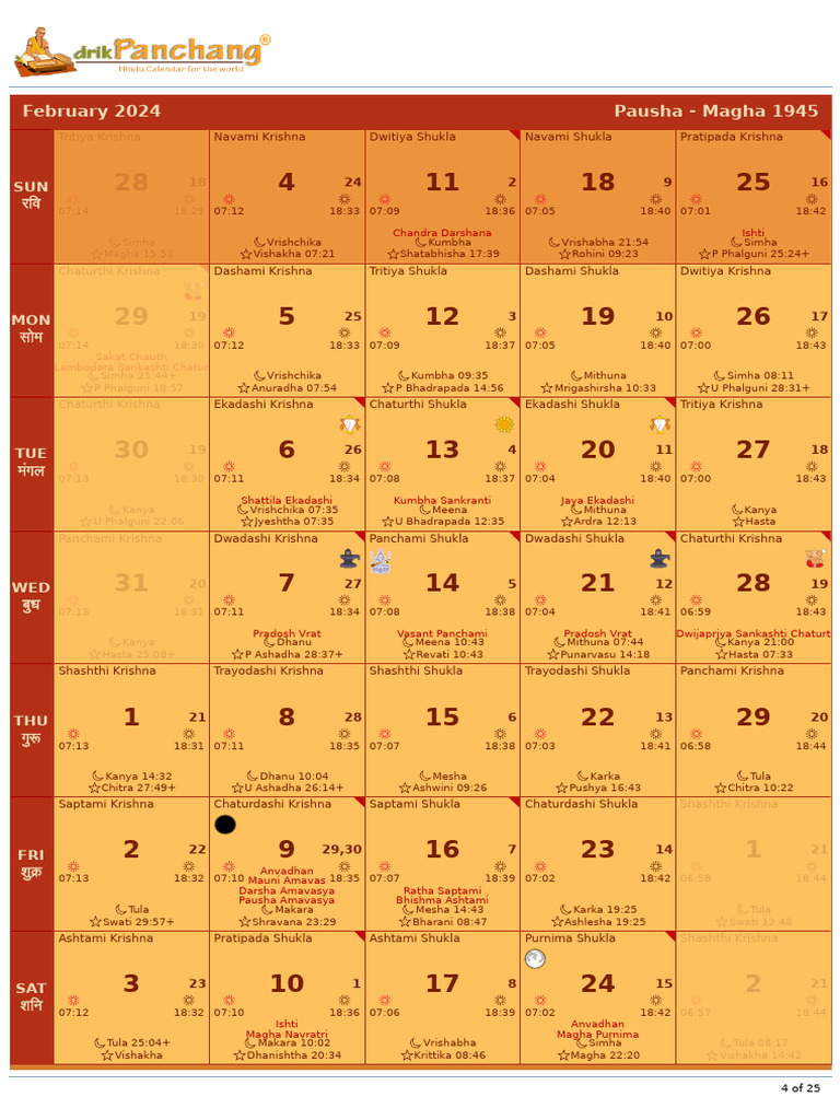 2024 Drik Panchang Hindu Calendar v1 0 1 4 PDF Lunisolar Calendars