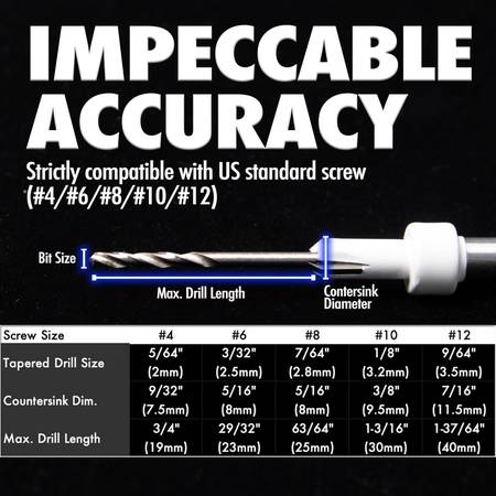 Carbide Tipped Pro Countersink Drill Bit Set #4 6 8 10 12 5 Piece