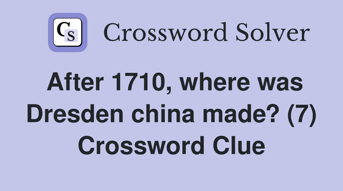 After 1710 where was Dresden china made? (7) Crossword Clue Answers