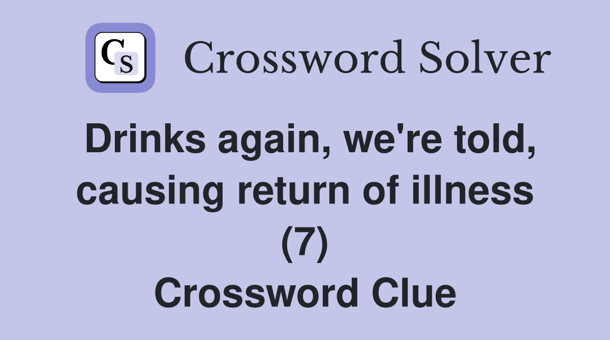 Drinks again we #39 re told causing return of illness (7) Crossword