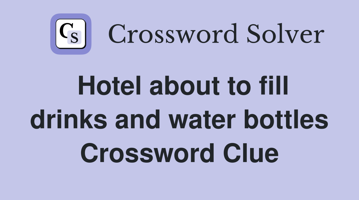 Hotel about to fill drinks and water bottles Crossword Clue Answers