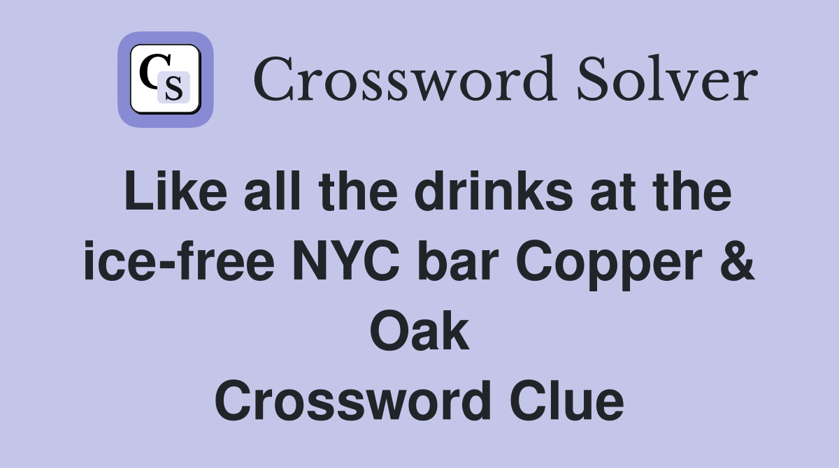 Like all the drinks at the ice free NYC bar Copper Oak Crossword