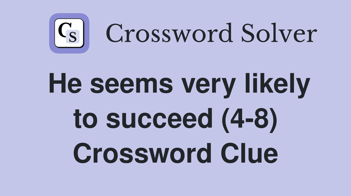 He seems very likely to succeed (4 8) Crossword Clue Answers