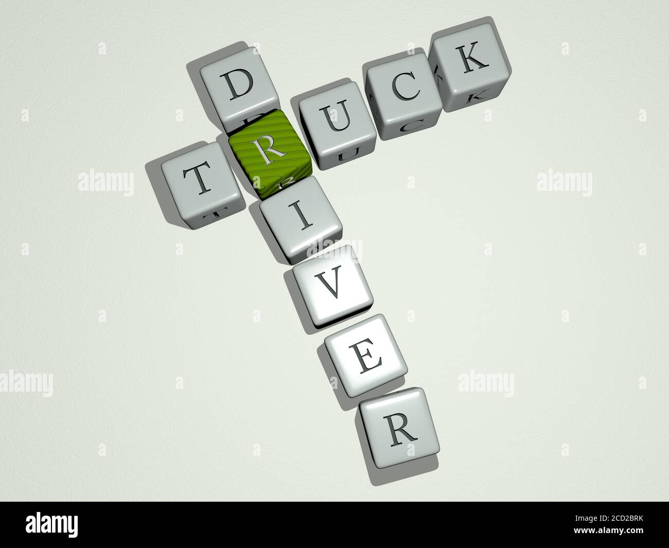 TRUCK DRIVER crossword by cubic dice letters 3D illustration Stock