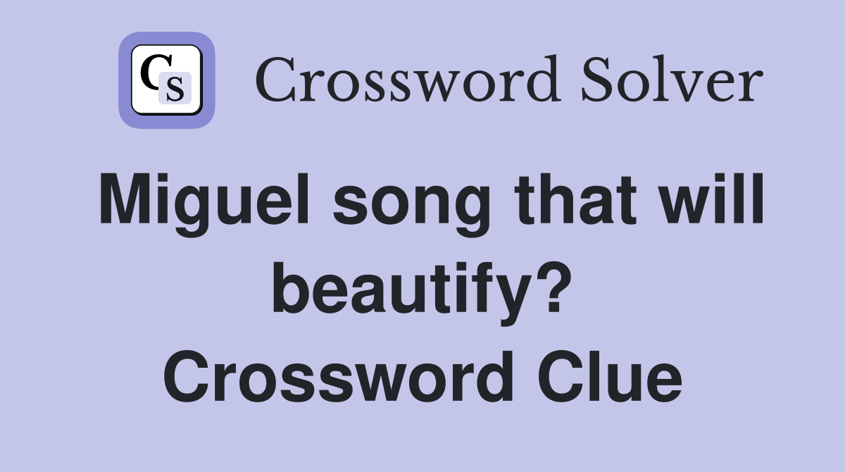Miguel song that will beautify? Crossword Clue Answers Crossword Solver