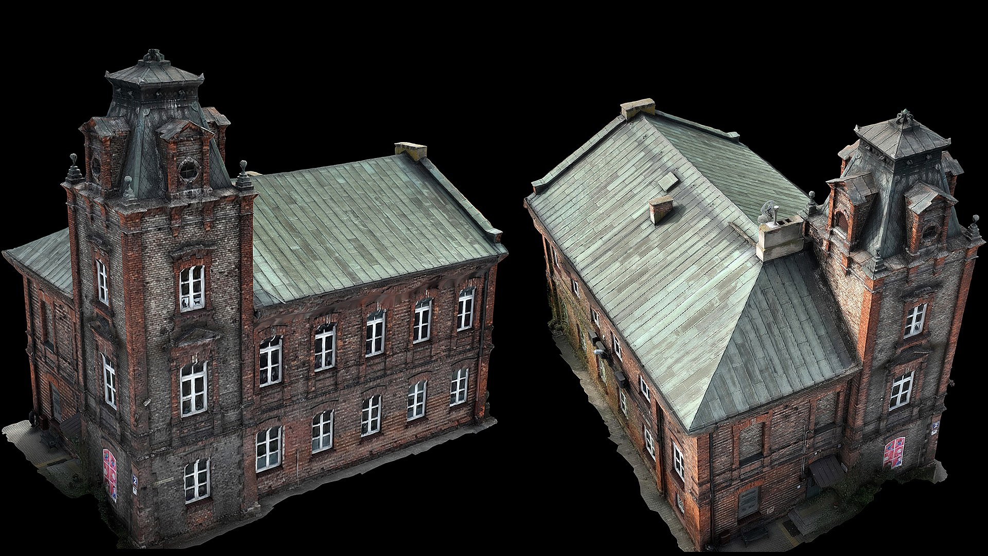 Classical Abandoned Bricks Building Drone Photogrammetry Model