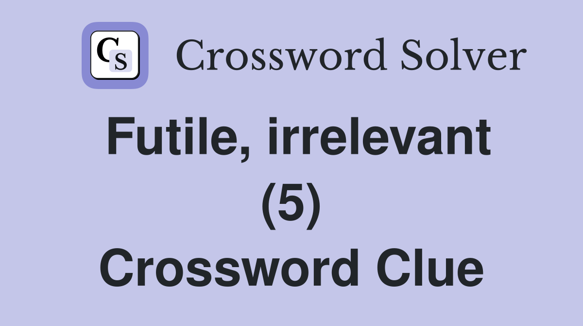 Futile irrelevant (5) Crossword Clue Answers Crossword Solver