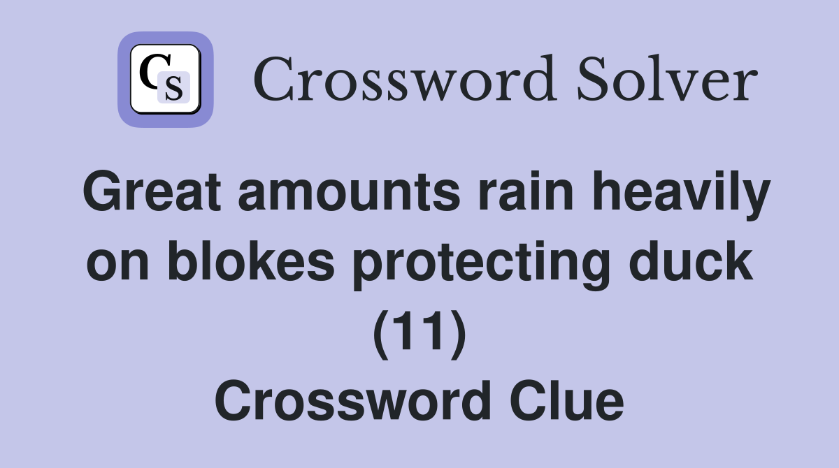 Great amounts rain heavily on blokes protecting duck (11) Crossword