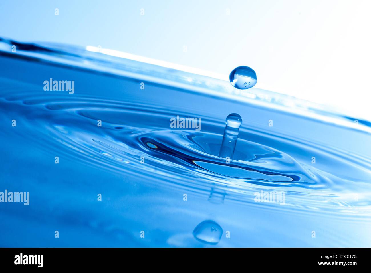 Water drop into blue water Stock Photo Alamy