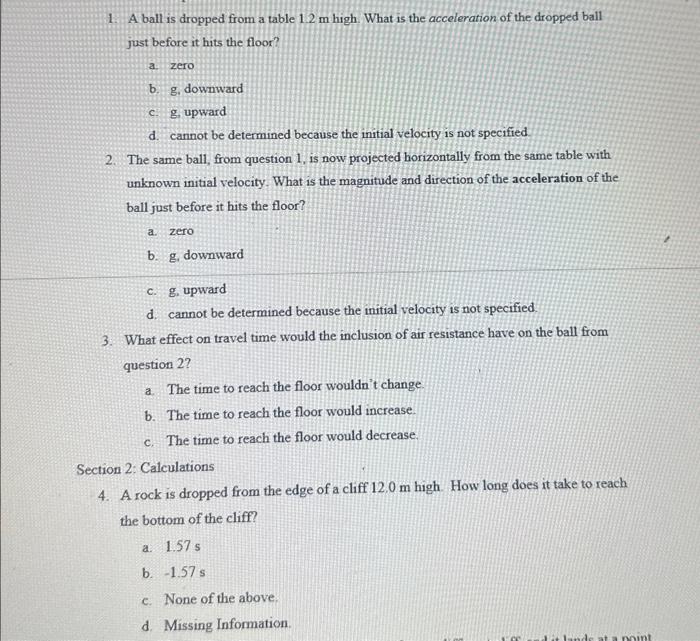 Solved 1 A ball is dropped from a table 1 2 m high What is Chegg com