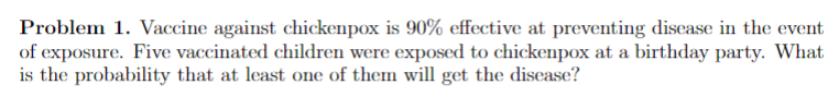 Solved Problem 1 Vaccine against chickenpox is 90% Chegg com