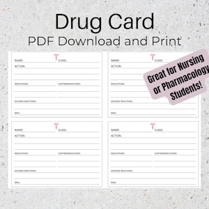 Drug Card PDF Printable Download and Print Great for Nursing or