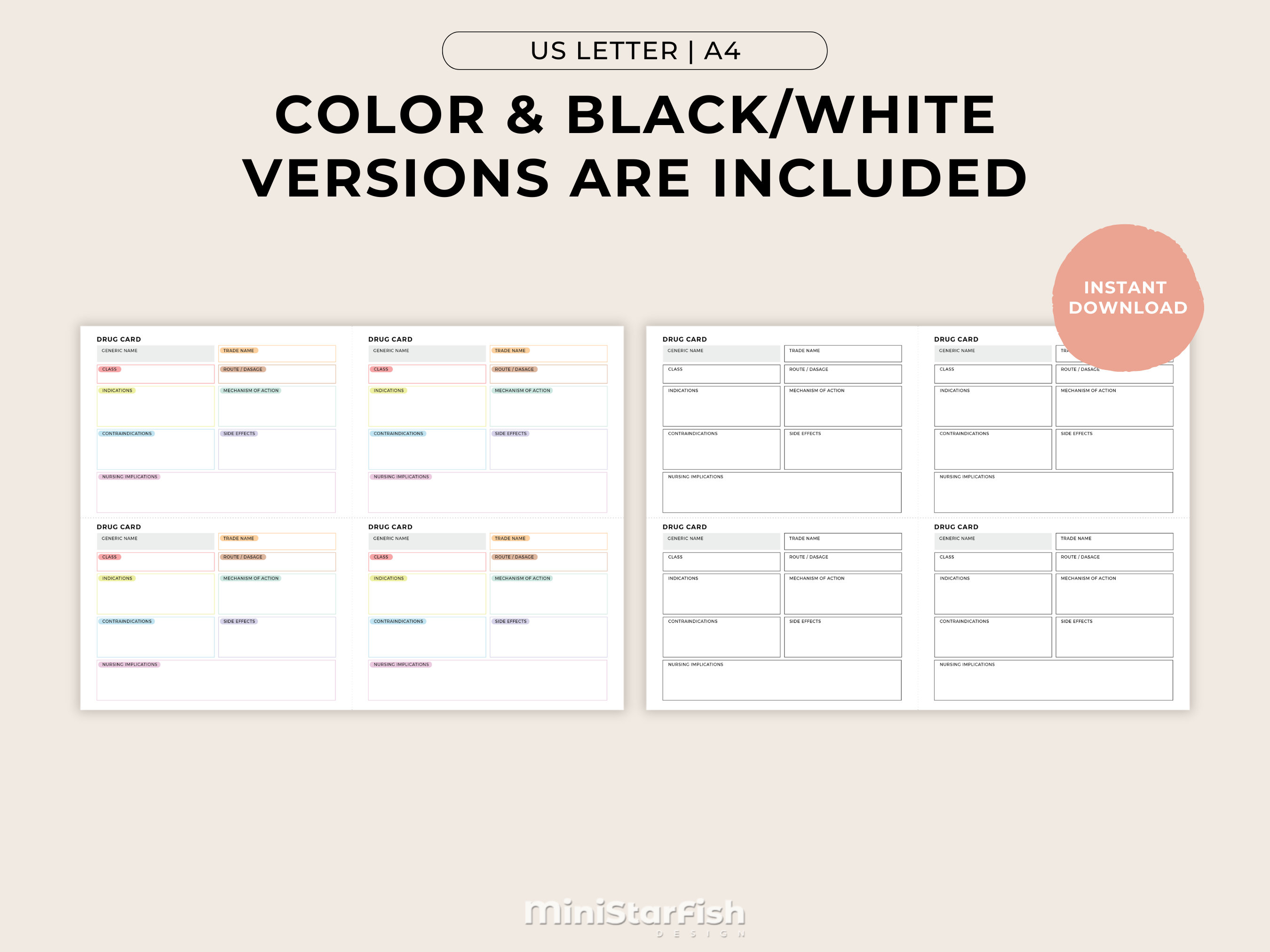 Nursing Drug Card Template Pharmacology Printable Nursing Etsy