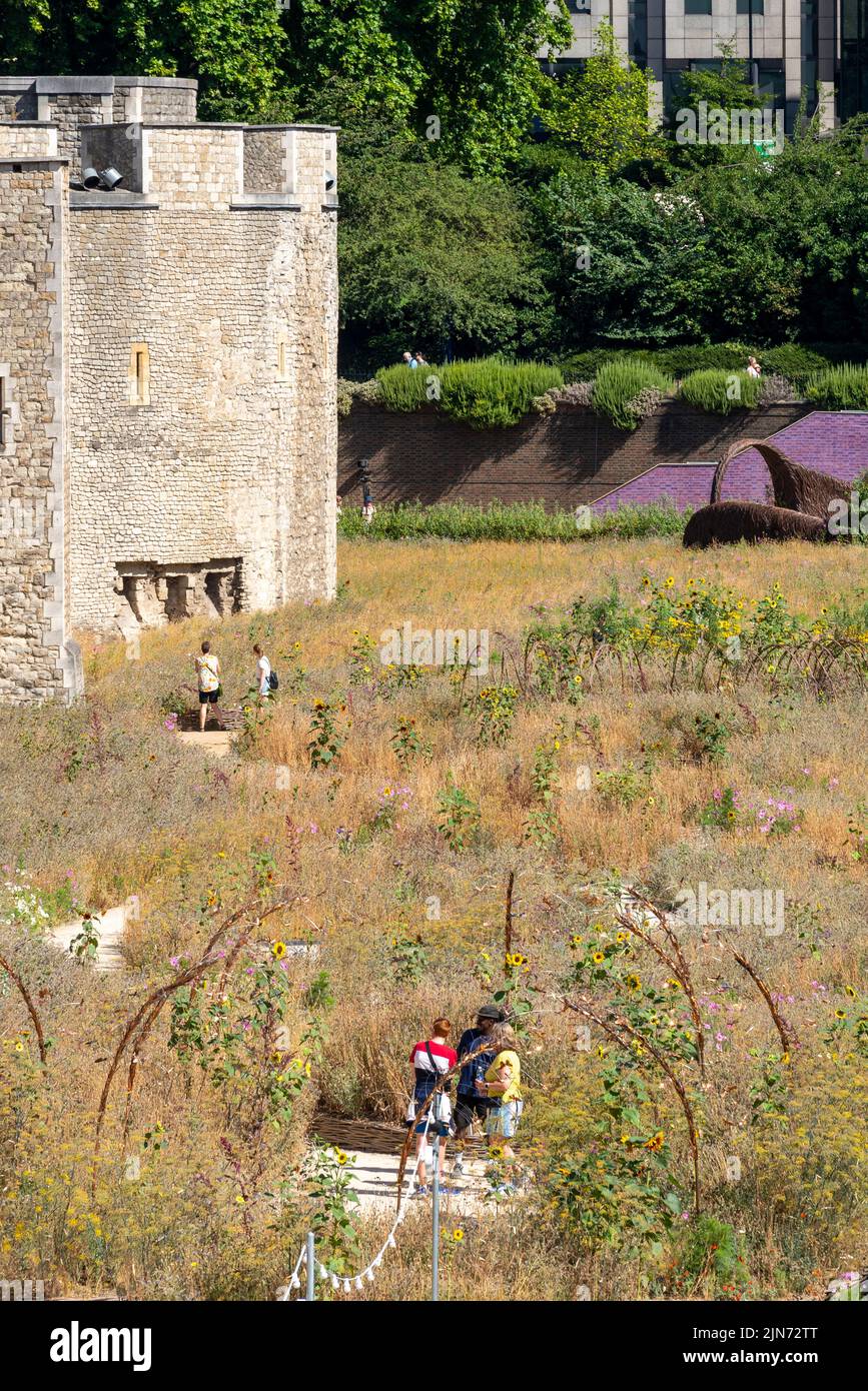 Tower of London Superbloom visitor attraction in August 2022 during hot