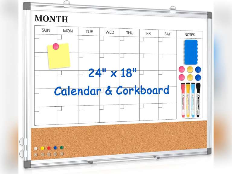 Monthly Calendar Whiteboard Dry Erase Cork Board Combo for Wall 24 quot x
