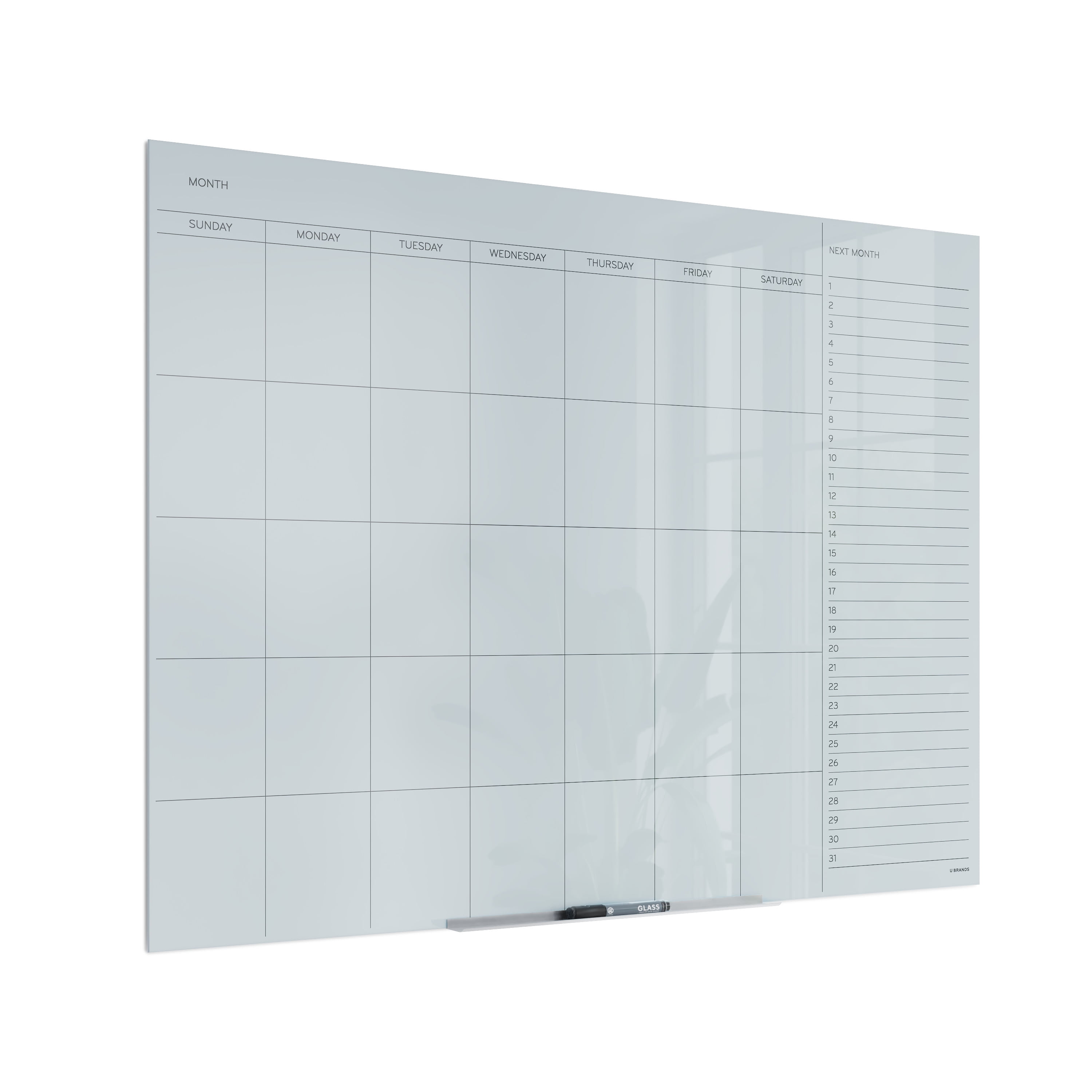 U Brands Floating Non Magnetic Glass Dry Erase Monthly Calendar Board