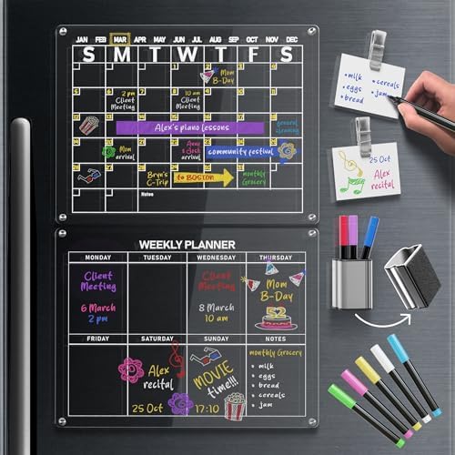 Amazon com : 2 Pack Acrylic Calendar for Fridge Clear Magnetic Fridge
