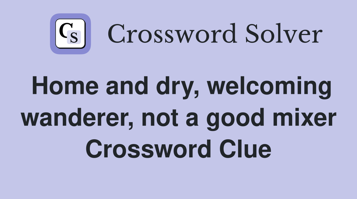 Home and dry welcoming wanderer not a good mixer Crossword Clue
