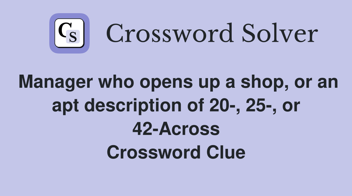 Manager who opens up a shop or an apt description of 20 25 or 42