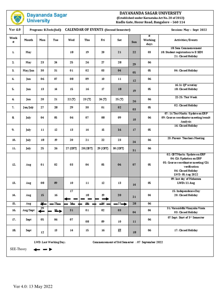 DSU Calendar II Sem B Tech May 2022 Ver 4 0 PDF
