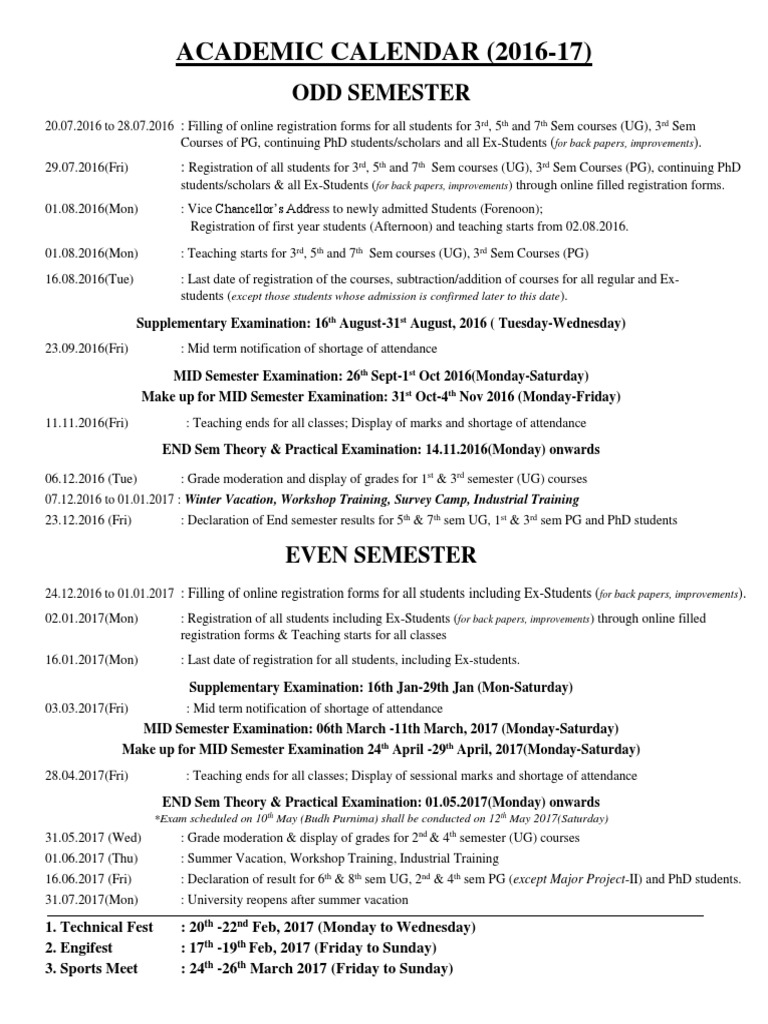 DTU Academic Calendar 2016 PDF Academic Term Educational