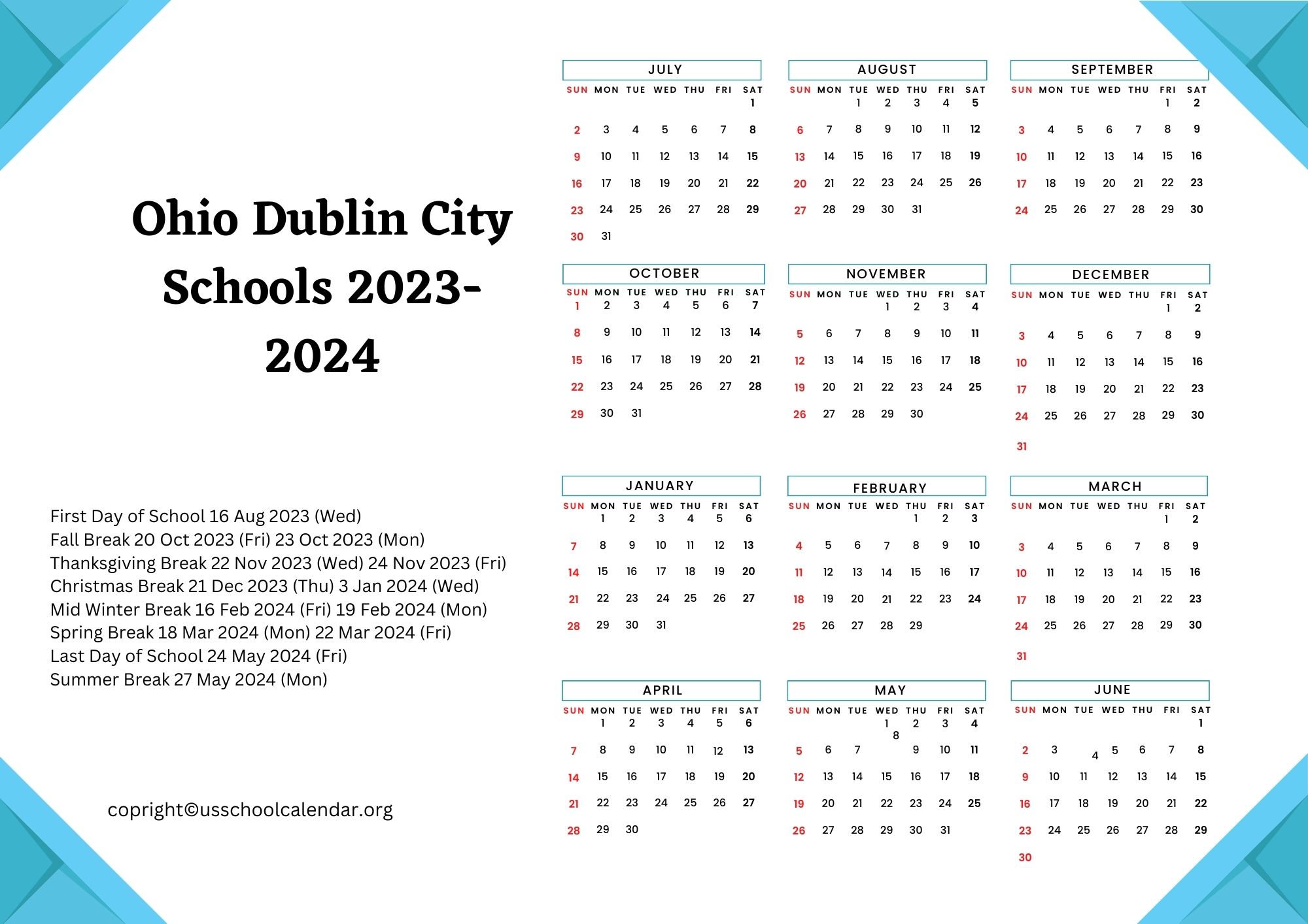 Dublin City Schools Calendar 2024 2025 (Holiday Breaks)