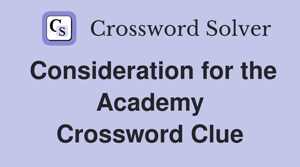 Consideration for the Academy Crossword Clue Answers Crossword Solver