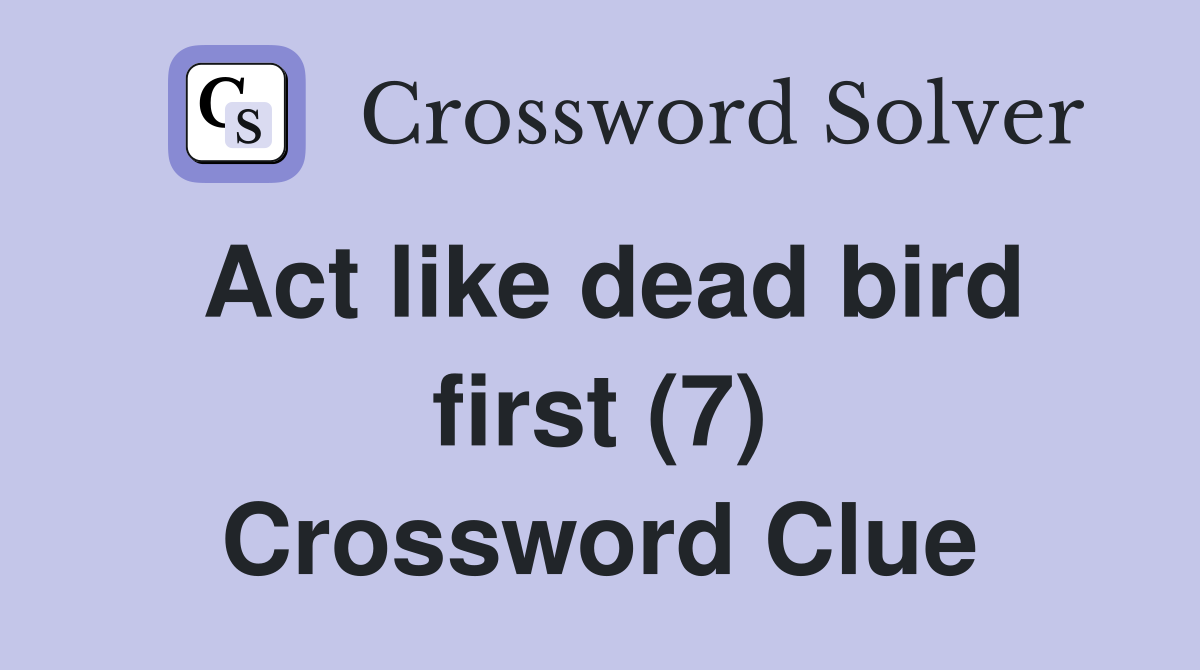 Act like dead bird first (7) Crossword Clue Answers Crossword Solver
