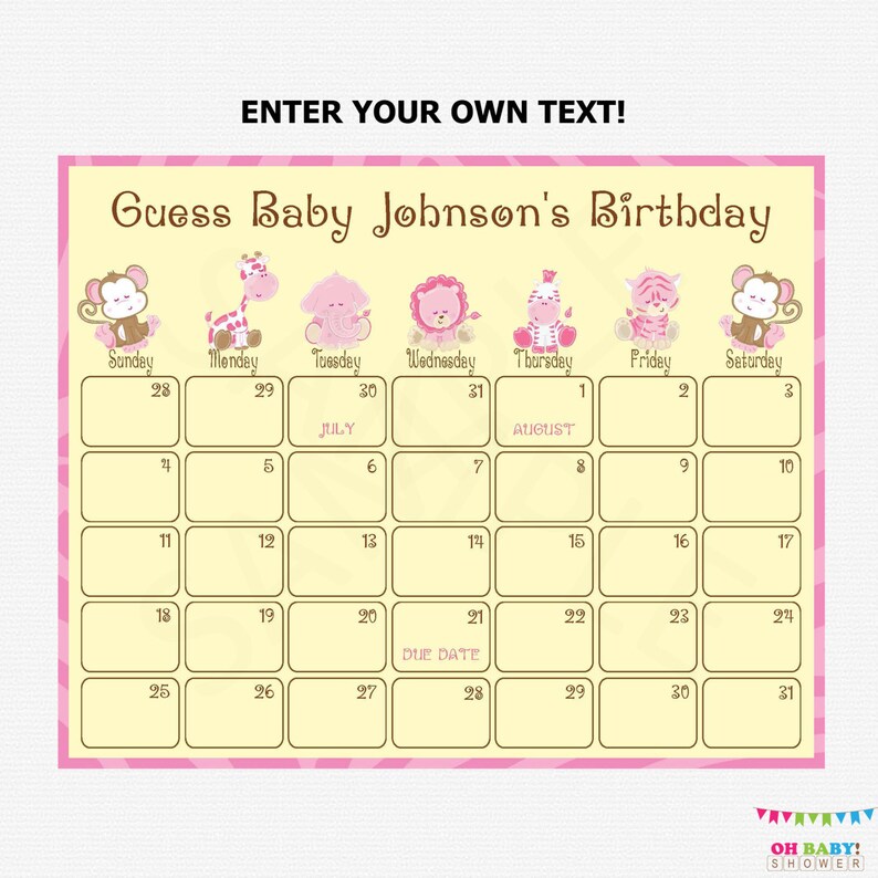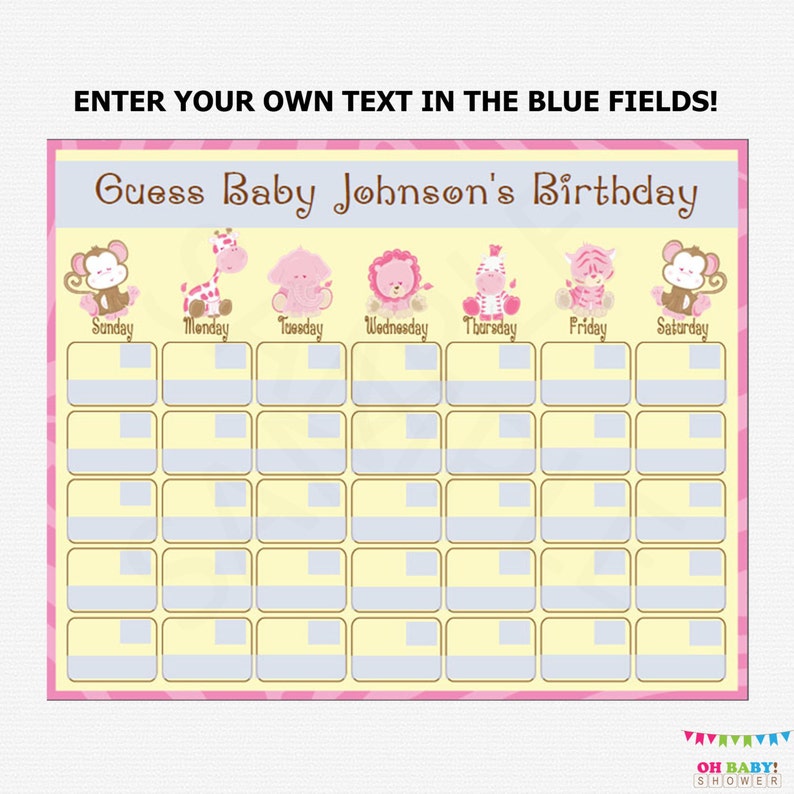 Editable Due Date Calendar Pregnancy Calendar Safari Baby Etsy