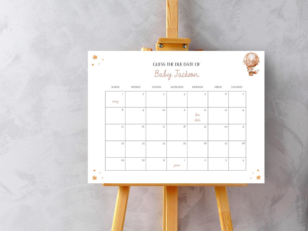 Baby Shower Due Date Calendar Pregnancy Calendar Template Boho Guess