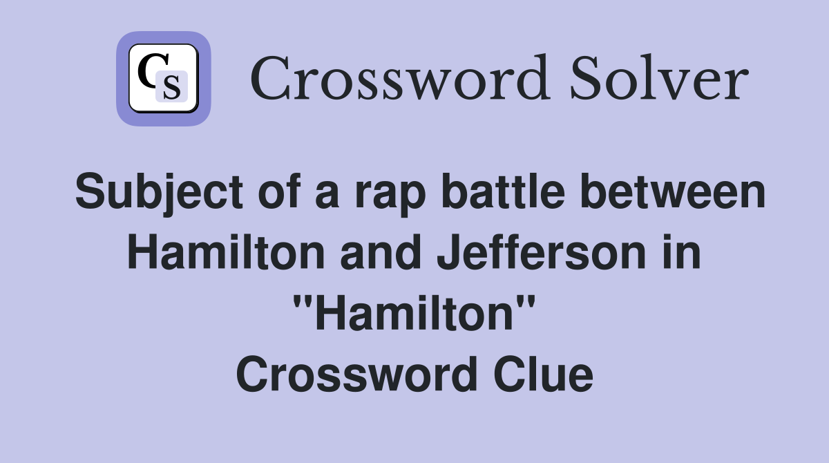 Subject of a rap battle between Hamilton and Jefferson in quot Hamilton