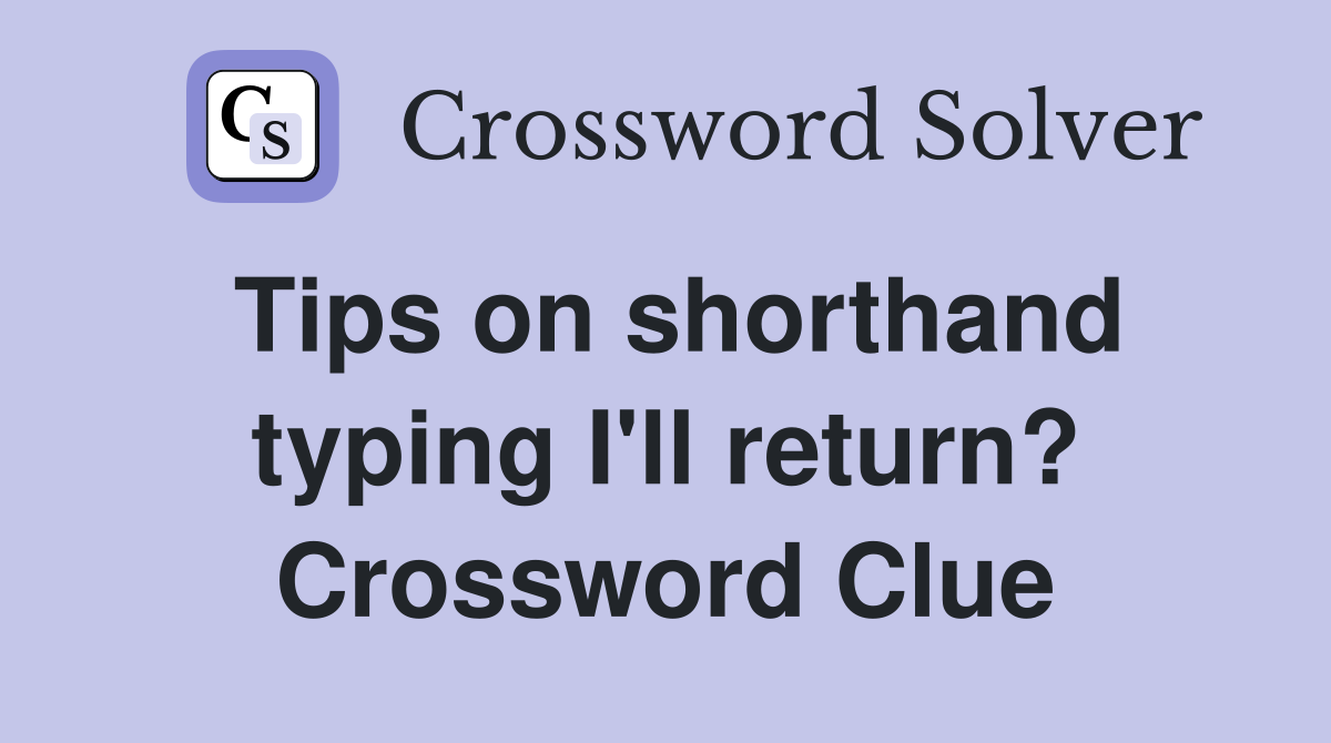 Tips on shorthand typing I #39 ll return? Crossword Clue Answers