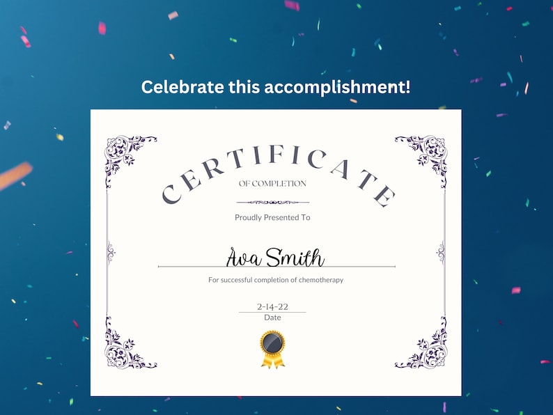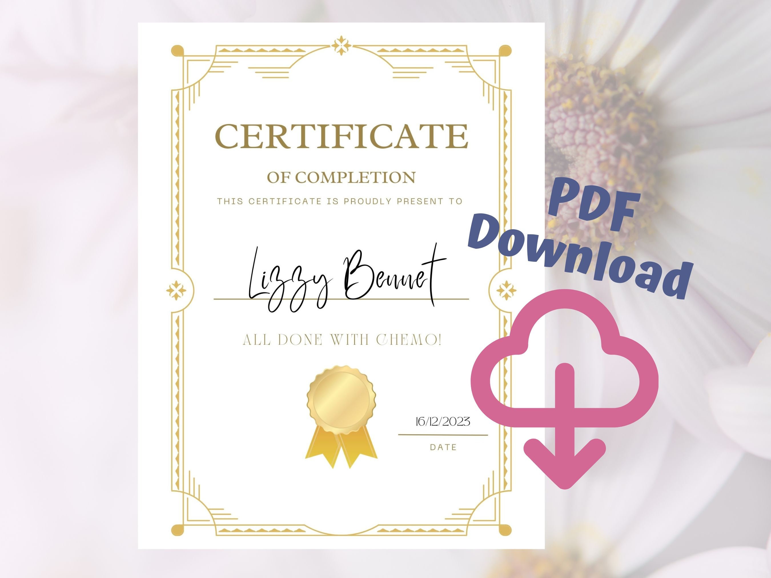 Cancer Chemo Treatment Completion Certificate Instant Download