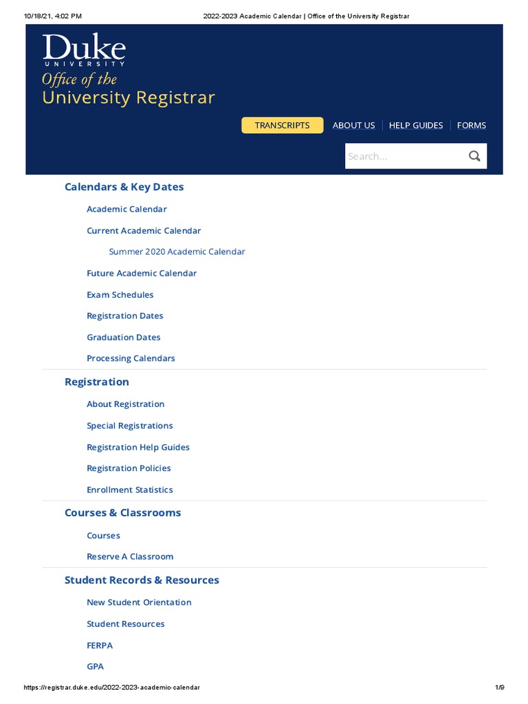 😊 Duke University Academic Calendar 2022 2023 😊 PDF