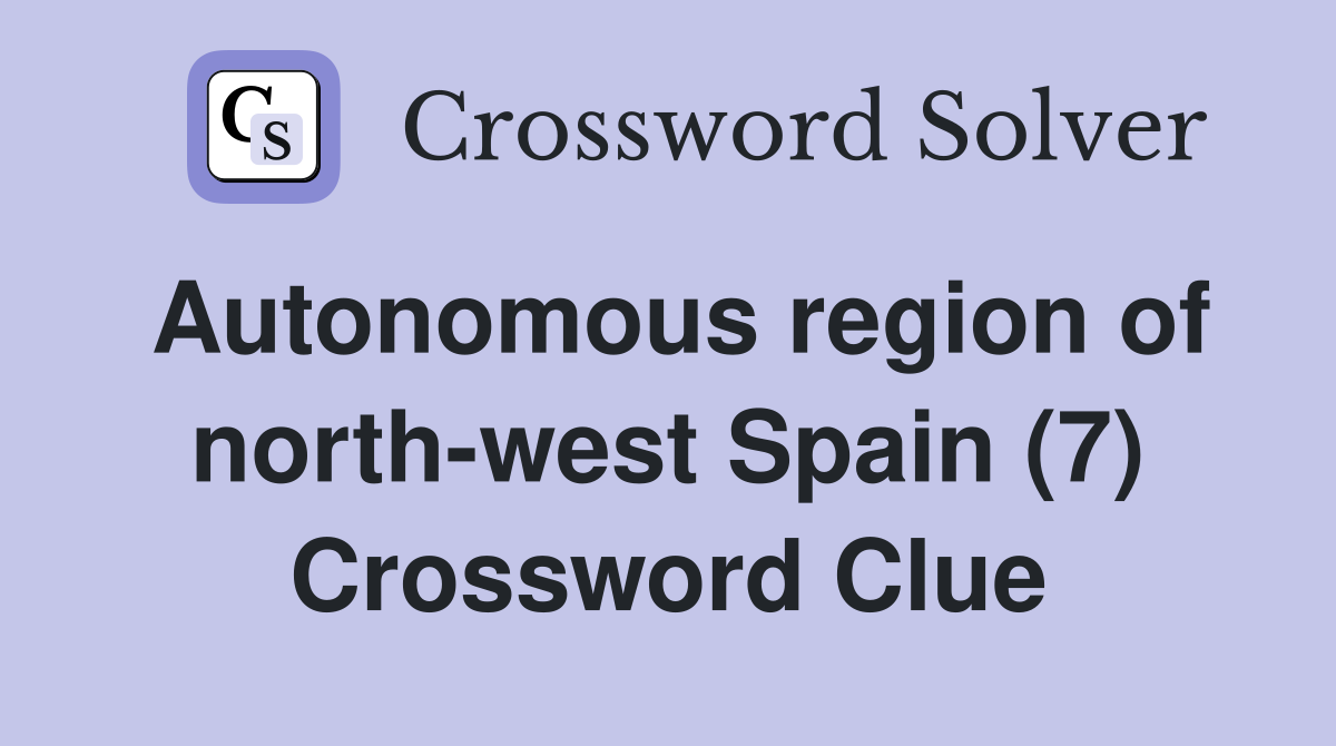 Autonomous region of north west Spain (7) Crossword Clue Answers