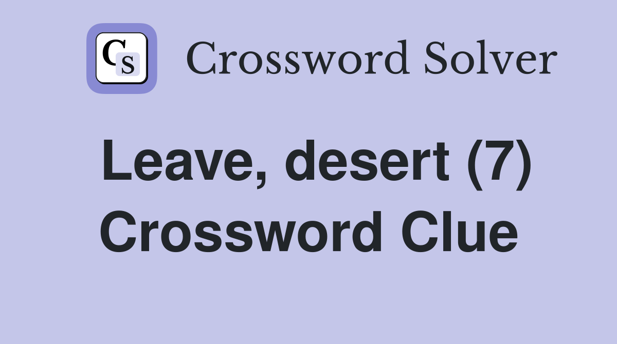 Leave desert (7) Crossword Clue Answers Crossword Solver