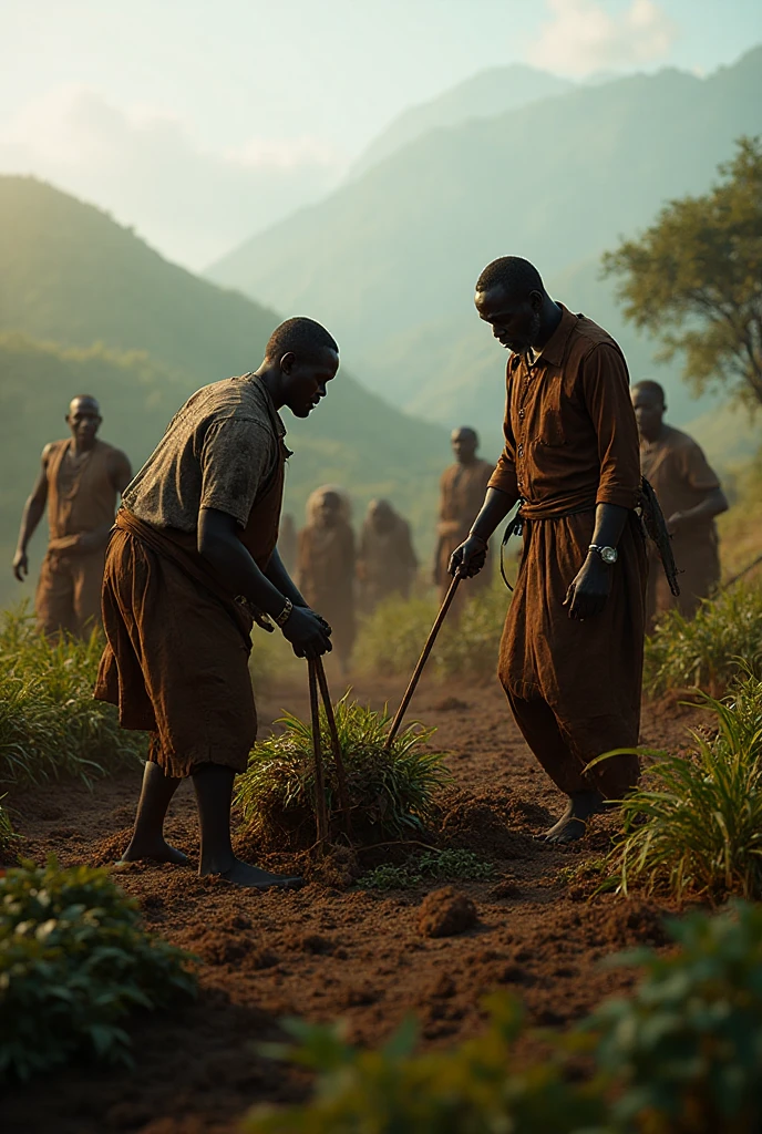 It creates an image of a peasant in his machamba in Africa tilling the