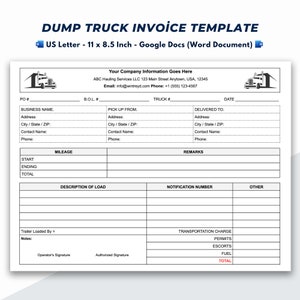 Dump Truck Invoice Templates: Download Invoice Template for Hauling