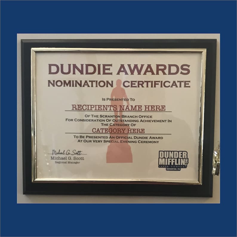Dundie Certificate PlaqueDundie Award CertificateThe Office Etsy