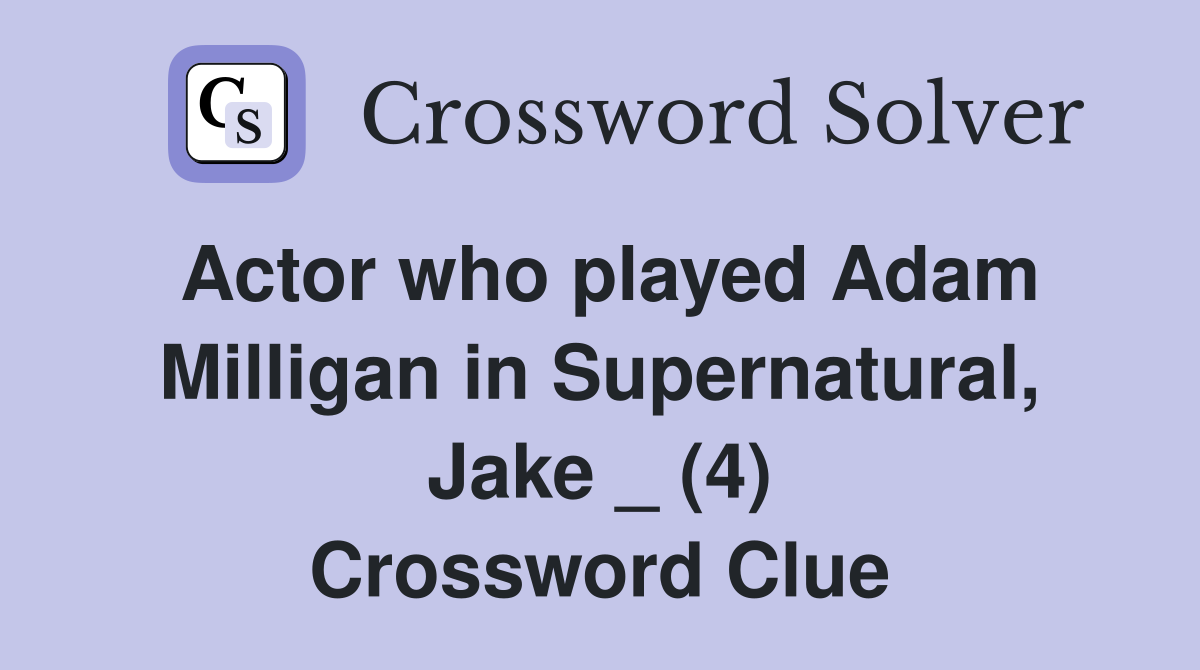 Actor who played Adam Milligan in Supernatural Jake (4) Crossword