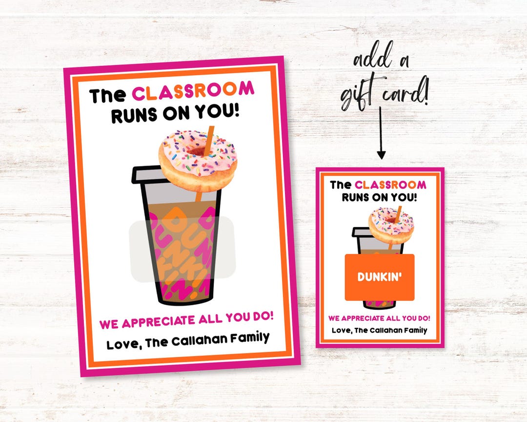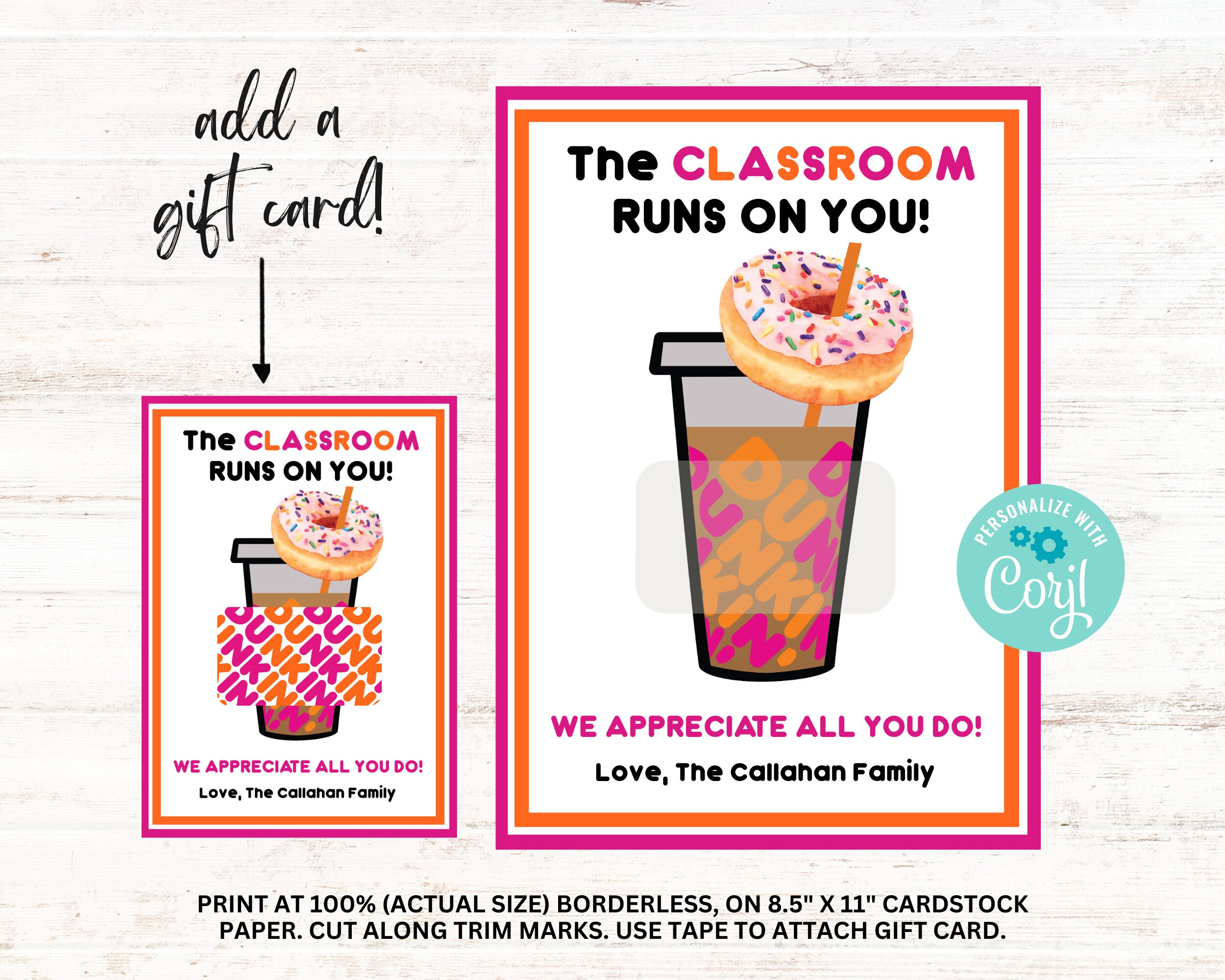 Teacher Appreciation Dunkin Donuts Gift Card Printable Template
