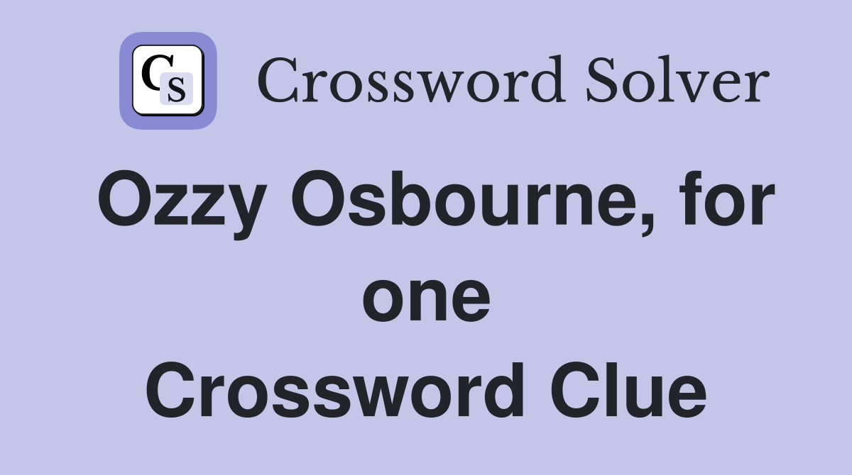 Ozzy Osbourne for one Crossword Clue Answers Crossword Solver
