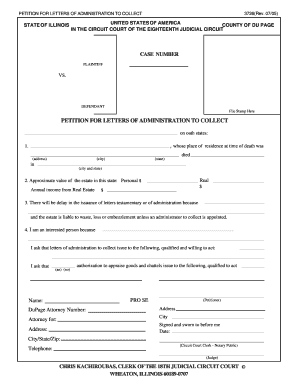 Fillable Online co dupage il 07/05) PETITION FOR LETTERS OF