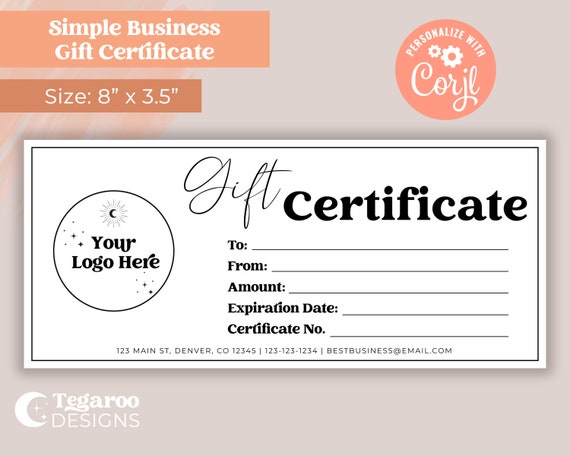 Business Gift Certificate Editable Gift Certificate Template Etsy